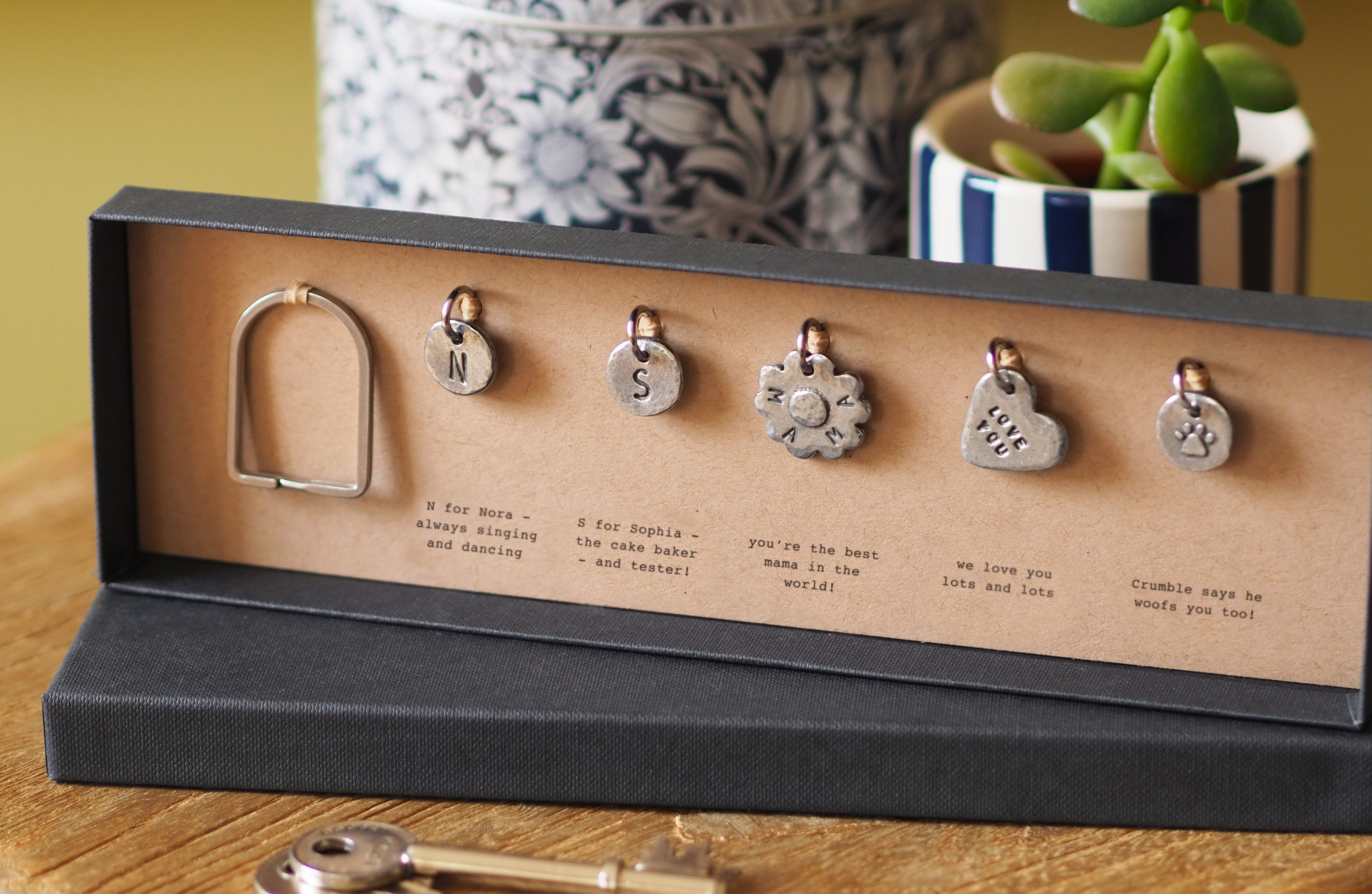 Our joy comes from turning those moments into something tangible for tucking into the pockets of the ones you love. Sweet messages are stamped into keyrings and keepsakes, each one designed from scratch at the workbench, made in England and finished with thoughtful details.