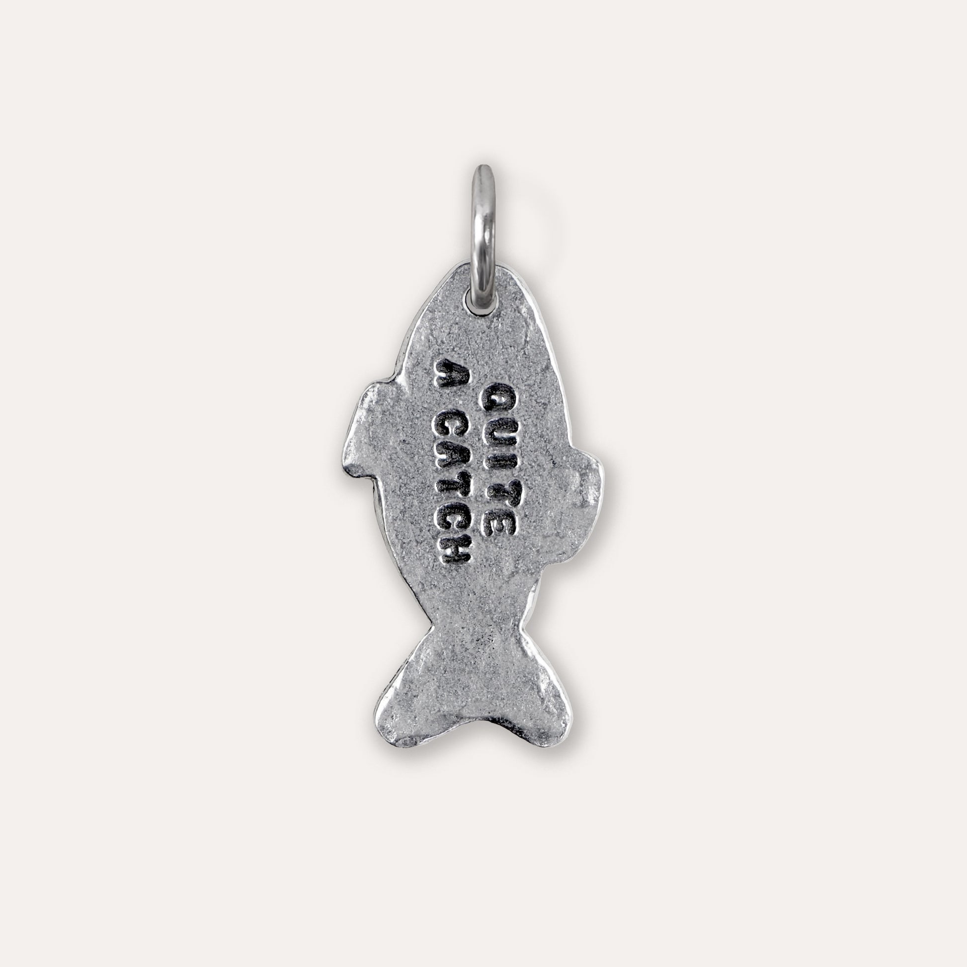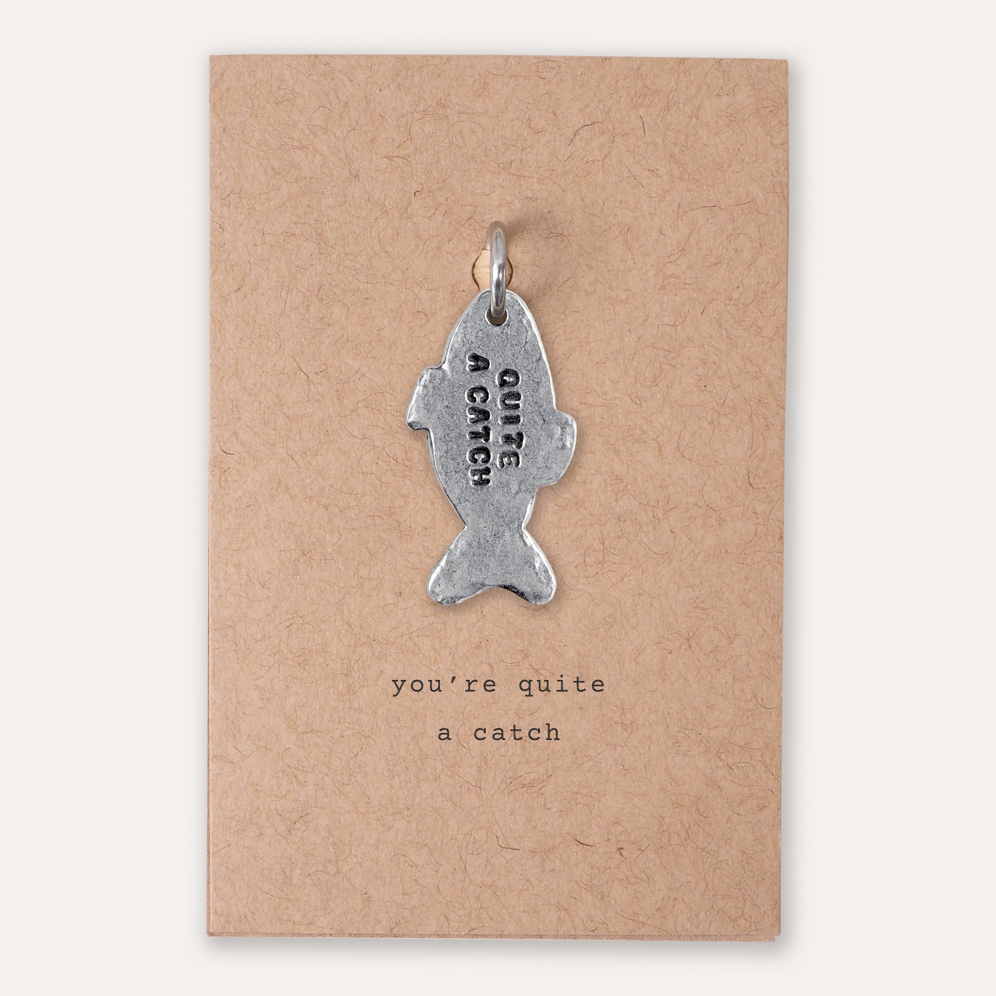 This little fish shaped charm is stamped with 'quite a catch' and designed to slide onto an existing keyring or bought with our charm and key holder to start a collection with other charms from our range such as initials or a heart.